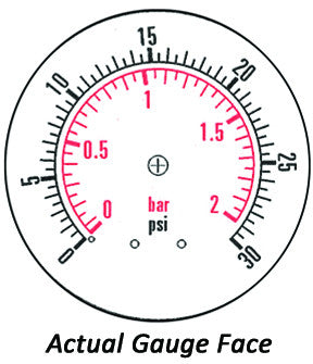 • 0 - 30 psi (≈ 0-2 bar)