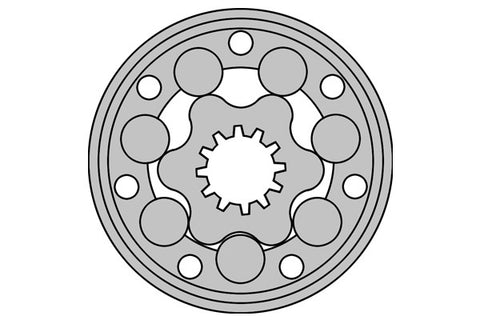 The Rolortorc™ gear set has rollers added to the outer ring which act as roller bearings, reducing friction and wear and increasing mechanical efficiency. This extends the operating life and provides better efficiency at continuous high pressures.