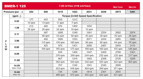 The BMER-2 series of motors (upgraded from BMER-1) offers a Rolortorc™ gear set with high speed distribution flow and high pressure. Tapered roller bearings on the output shaft permit high axial and radial forces offering a smooth operation during low pressure start up and high pressure operation.