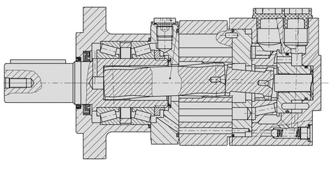 The BMSY series of motors offers a Rolortorc™ gear set, disc distribution flow, and a low noise, highly efficient, low-speed high-torque design. Tapered roller bearings on the output shaft permit high axial and radial forces offering a smooth operation during low pressure start up and high pressure operation.